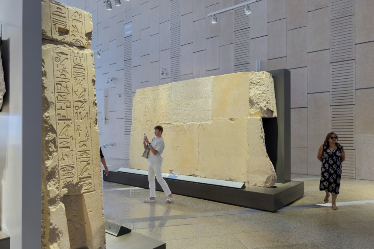 Использованы в основном местные материалы — камень, мрамор, гранит. Это не стилизация под «древний Египет», а прагматичное решение: прочность, термостойкость, логистика. Строительство велось в условиях сложного климата, поэтому архитектура максимально адаптирована к среде. Внутренние перегородки сделаны подвижными — чтобы менять конфигурацию залов под нужды коллекции.