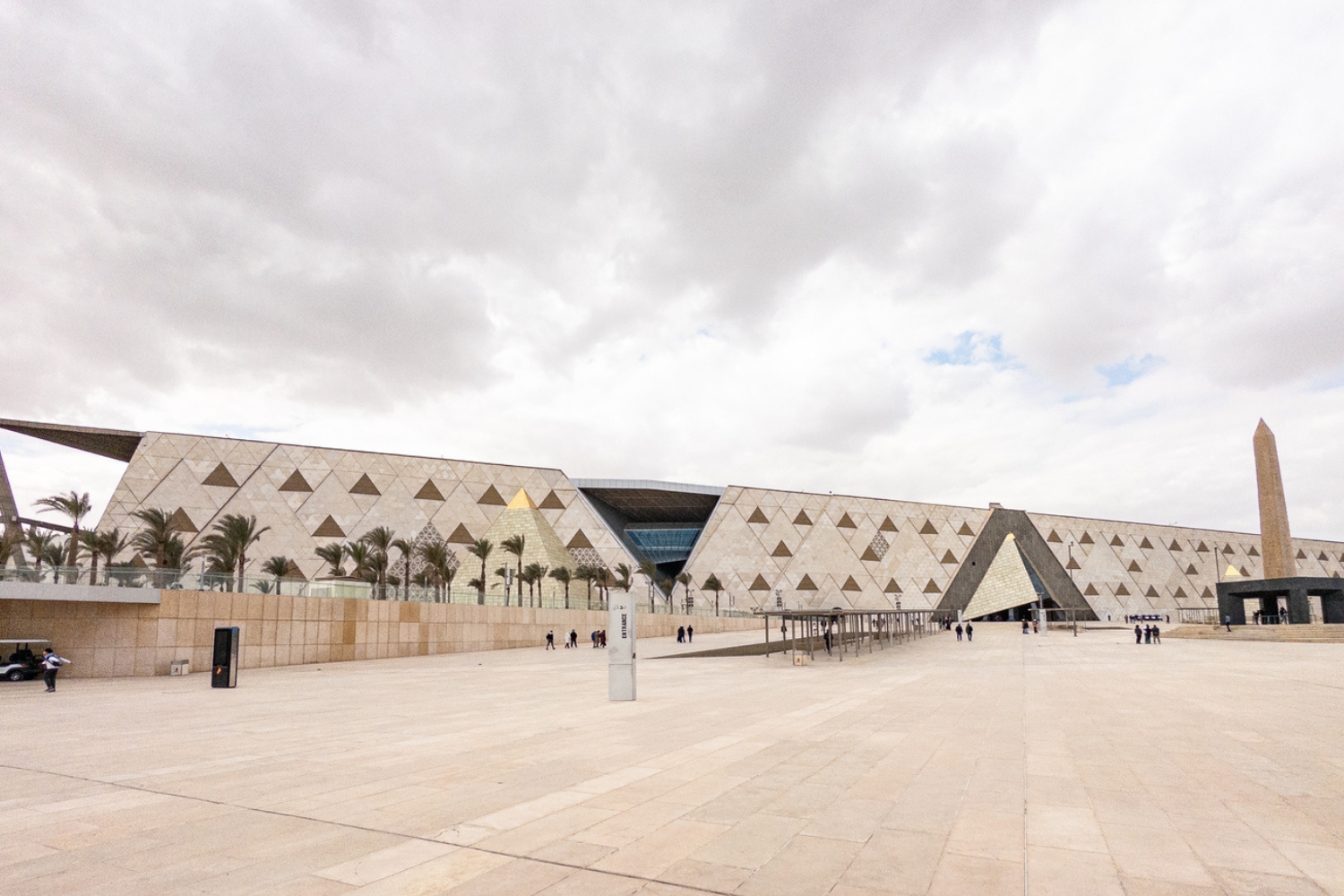 Архитектура музея формируется из трех линий: одна повторяет уклон плато, две другие — ориентированы на пирамиды Хеопса и Менкаура. Эти линии задают планировку здания и его разворот в пространстве. Такое построение связывает музей с главными точками ландшафта — не символически, а геометрически.