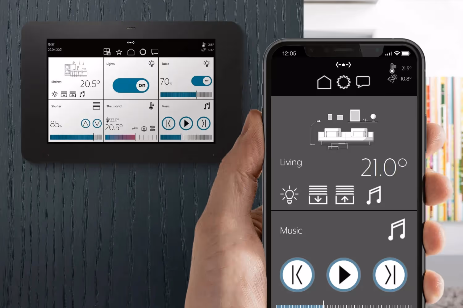 Еще один вариант — eNet SMART HOME. Эта система подключается по радиоканалу, подходит для готовых интерьеров и легко расширяется. Управление также доступно через приложение, сценарии создаются по аналогии с KNX или JUNG HOME.