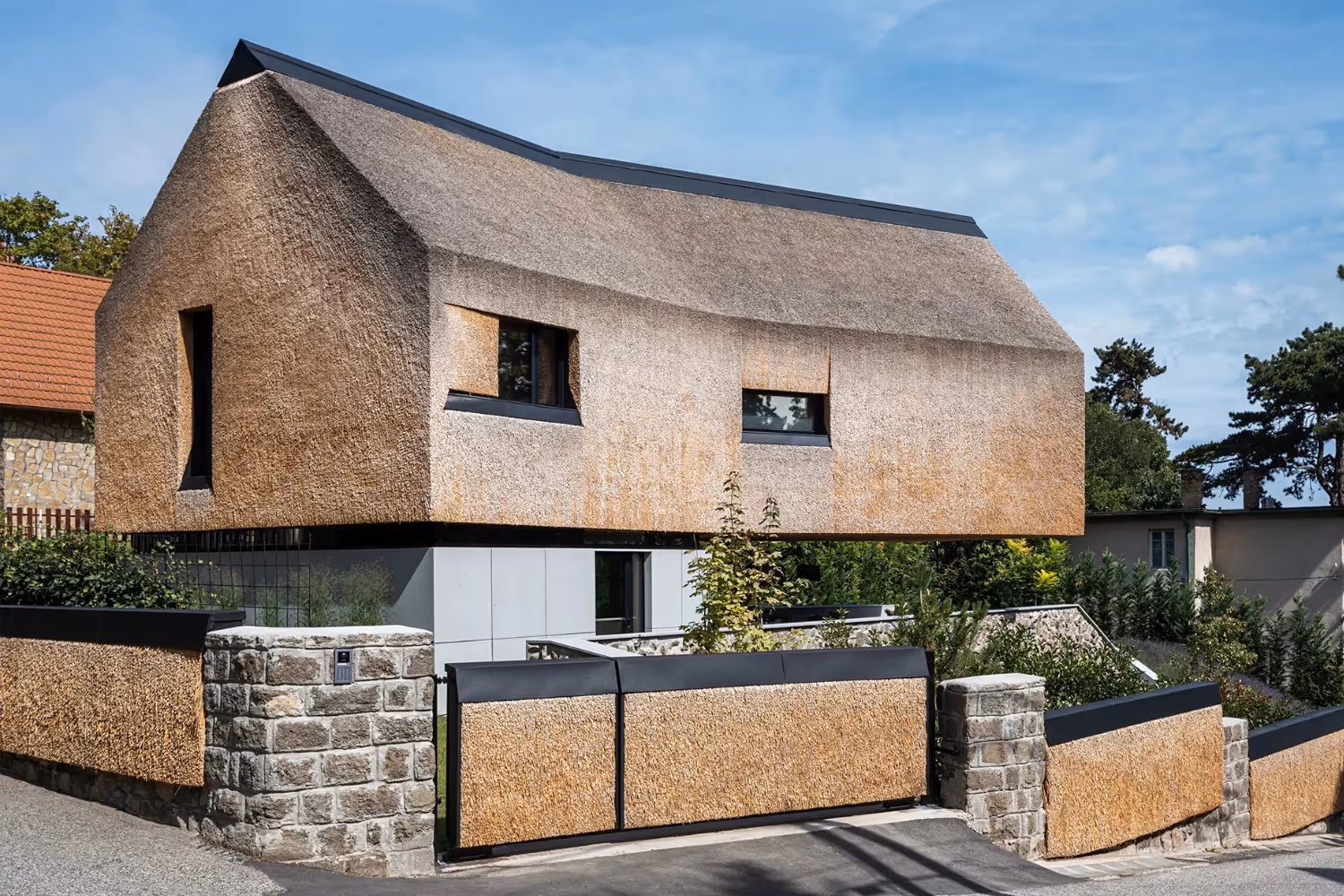 На берегу венгерского озера Балатон архитекторы RAPA использовали камыш для облицовки крыши, стен и нижней части жилого блока. Местный материал смягчил акустику террасы и сделал дом узнаваемым в социальных сетях. При правильном уходе такая крыша может прослужить до 40 лет, а уход сводится к периодической очистке и локальному ремонту.