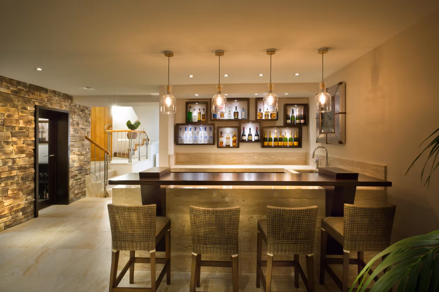Дизайнеры рекомендует не бояться насыщенных цветов и сложных паттернов, особенно если бар — это ниша или компактная зона. В домашнем баре уместны смелые решения, которые в большой комнате выглядели бы перегружено. Важно, чтобы выбранные обои не только украшали, но и задавали эмоциональный тон — от расслабленной гостеприимности до яркого праздничного настроения.