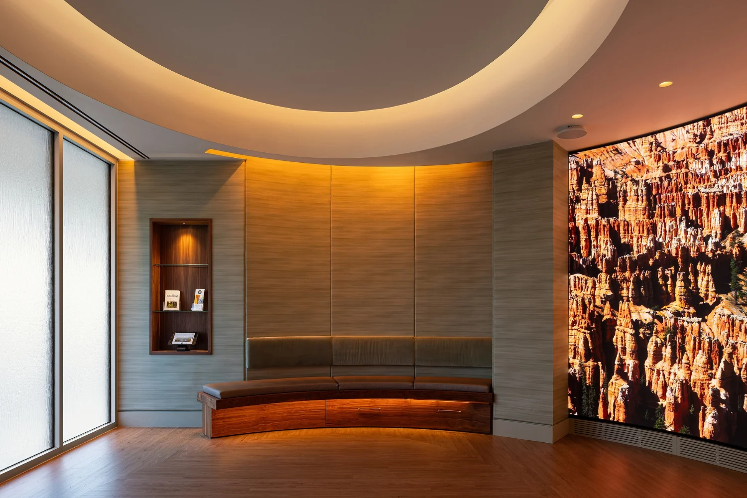 В лечебных учреждениях свет все чаще используют как инструмент снижения тревожности и стресса. В онкологических центрах создают пространства, где пациенты могут восстановить силы между процедурами: комнаты с регулируемым освещением, интерактивными LED-панелями и звуком. Эти решения помогают создать ощущение контроля и безопасной среды, что уменьшает эмоциональное напряжение.