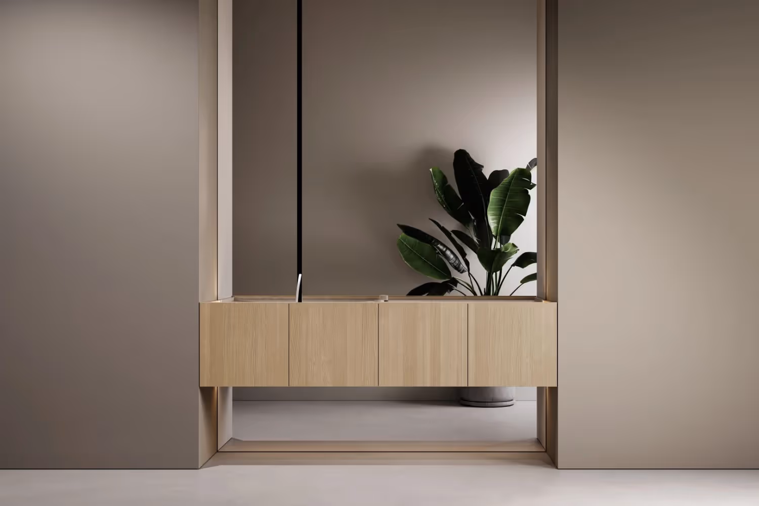 Ванная в понимании antoniolupi — это не просто место, где умываются. Это пространство для человека. Lineadacqua продолжает эту линию. Здесь нет желания удивить. Есть желание создать момент. Кран не на виду, техника молчит, работает только то, что действительно нужно.