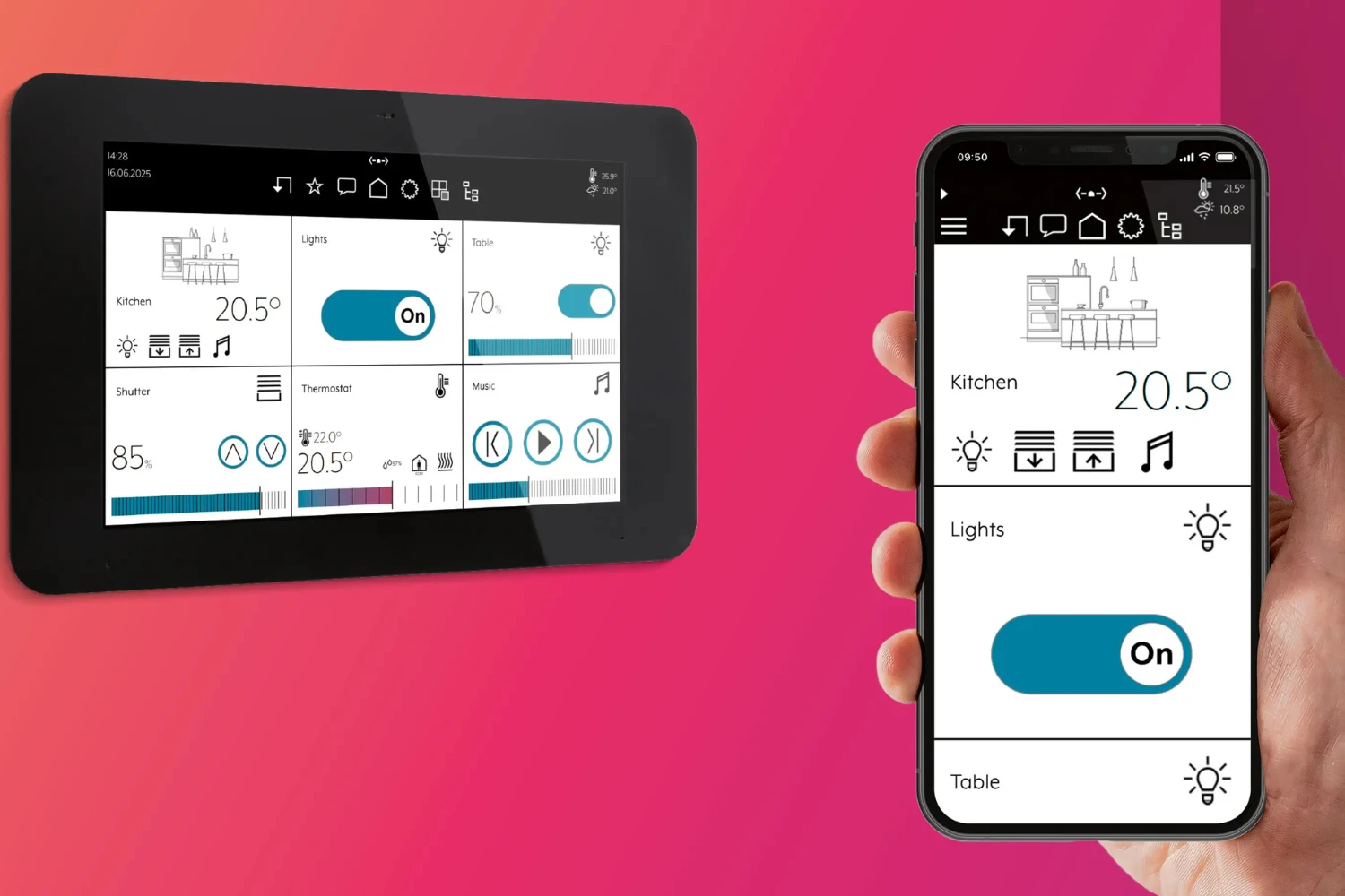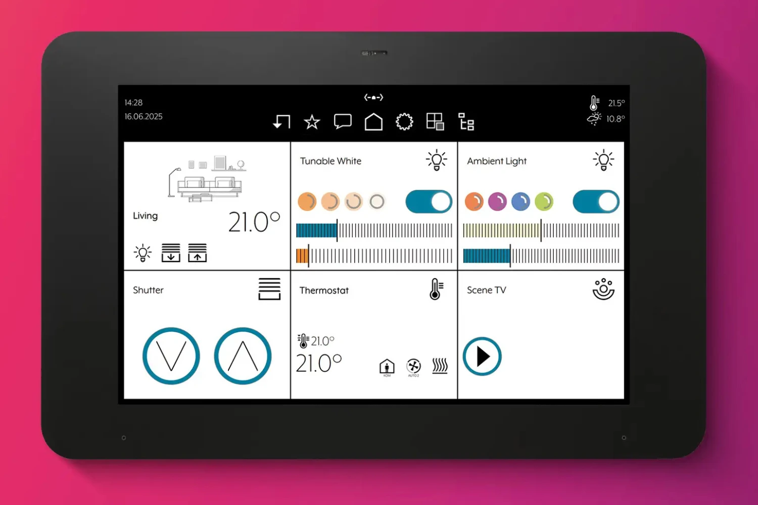 Сенсорные дисплеи JUNG — это три решения с разной глубиной интеграции, которые покрывают все сценарии управления зданием: от автономного визуализатора KNX до комплексного центра для умного дома.