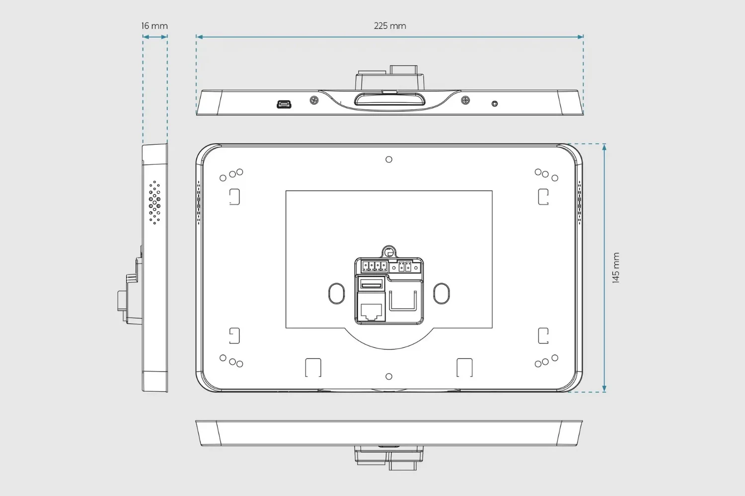 8-дюймовый HD-дисплей обеспечивает высокую детализацию и читаемость при любом освещении. Сенсор реагирует мгновенно, интерфейс поддерживает горизонтальную и вертикальную ориентацию, а датчик приближения автоматически включает экран при подходе. Внешне панель напоминает современный планшет — тонкий корпус (16 мм), плавная рамка, минималистичный дизайн.